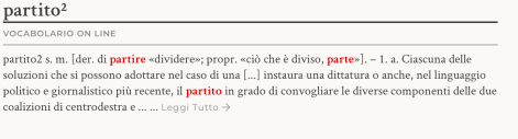 Partito: sostantivo maschile, «ciò che è diviso, parte».